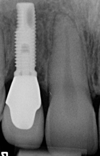 In questo modo viene fissata la vite in titanio su cui sarà successivamente posizionata la corona protesica.
