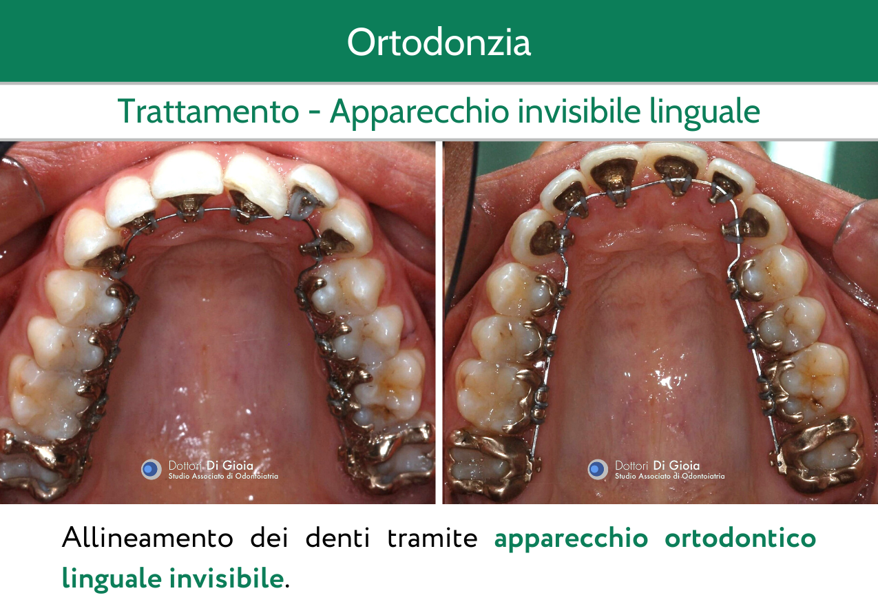 • Apparecchio Ortodontico Linguale - Apparecchio dentale che condivide le stesse caratteristiche dell’apparecchio ortodontico fisso, ma che viene applicato sul lato interno dei denti.